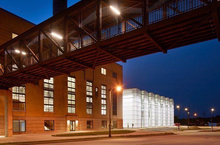 Архітектори створили пішохідний міст, який пробиває цегляну кладку, щоб з’єднати Powerhouse з чинним кампусом, сполучаючи коледж та місто.