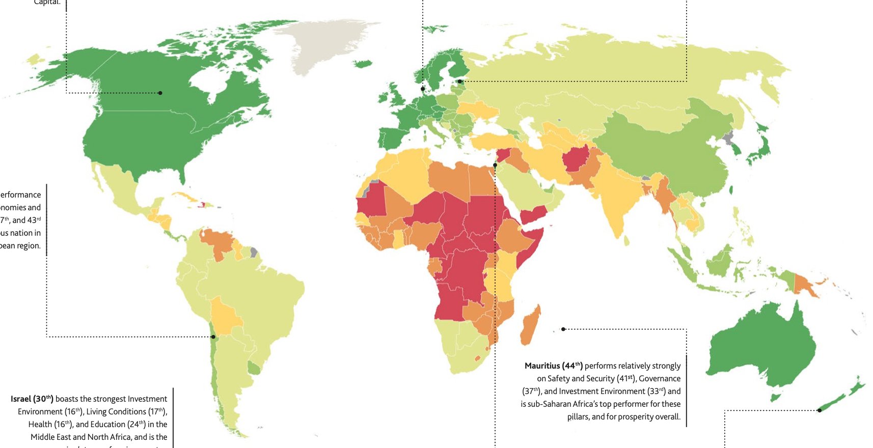 Індекс базується на даних академічних досліджень, аналітичних звітів та соцопитувань, які включають понад сто показників, таких як поширеність діабету до та рівень імунізації населення. Дані групуються у дев’ять категорій, зокрема розвиток економіки, освіта, здоров’я, безпека, персональні свободи, екологія тощо.