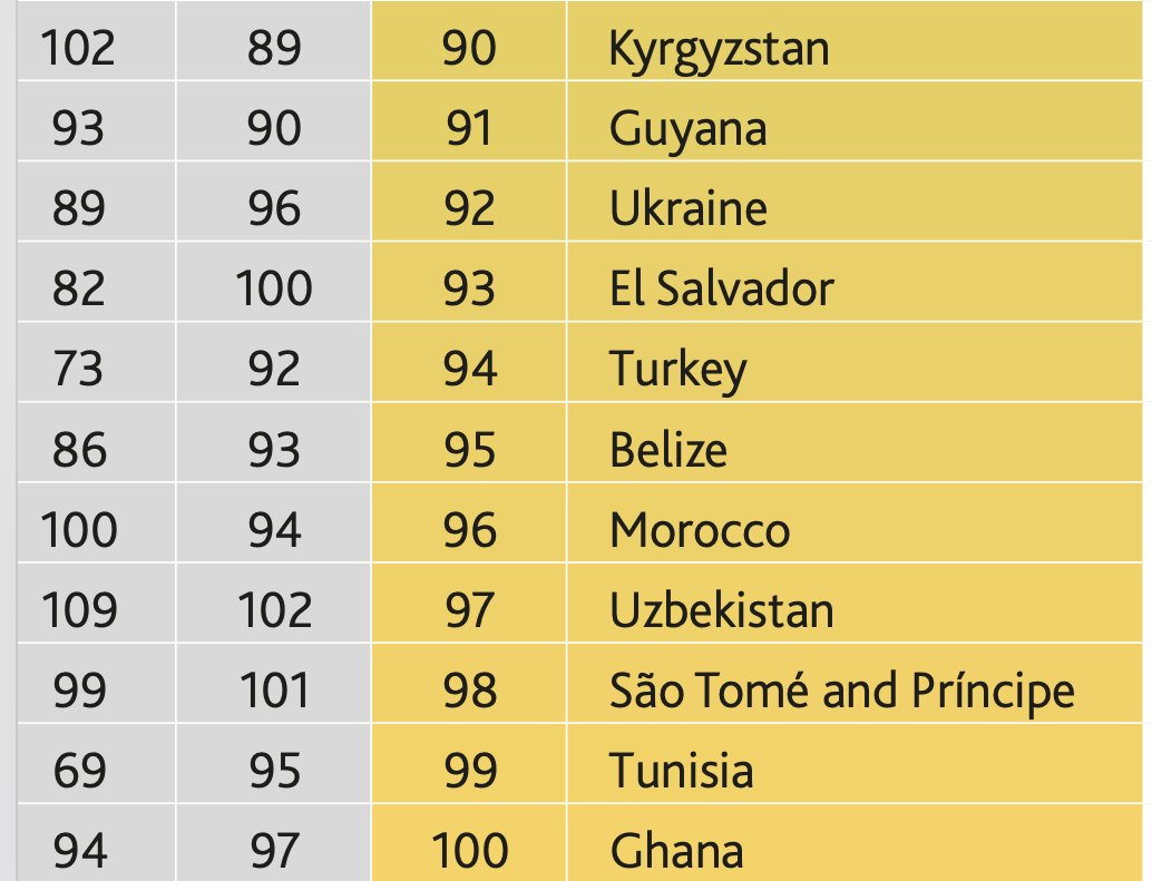 Остання десятка першої сотні рейтингу добробуту