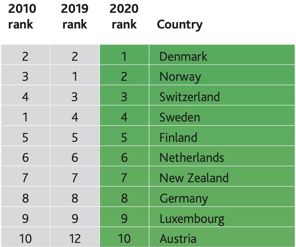 Перша десятка в рейтингу добробуту, очолювана Данією