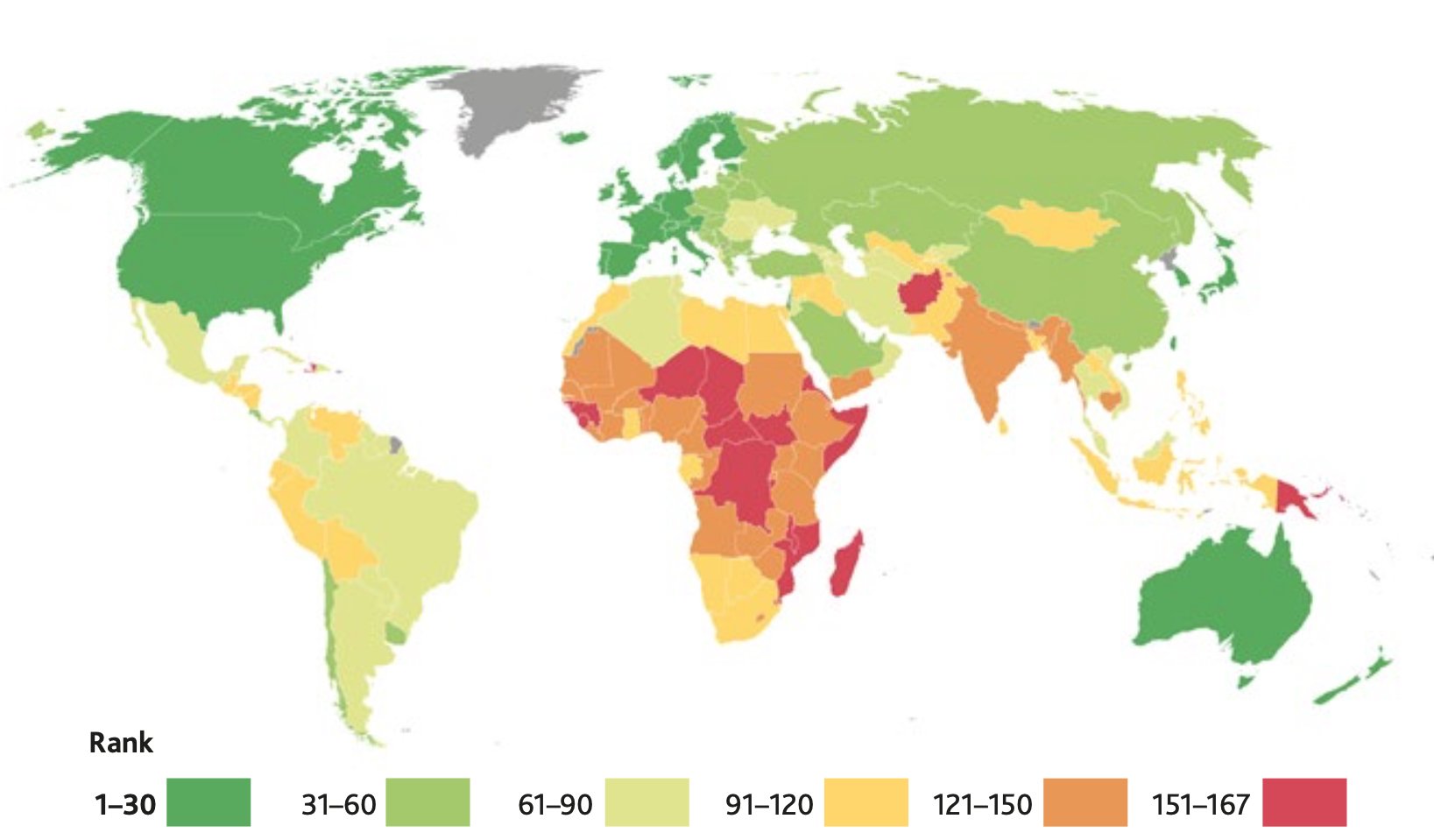 Станом на 2020 рік, найгірше в Україні з безпекою, що зумовлено війною на Донбасі. Також експерти відзначили серйозні проблеми з системою охорони здоров’я та довкіллям.