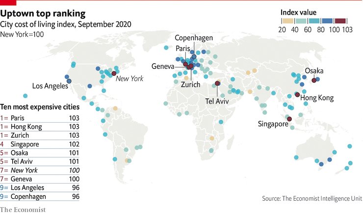 Укладачі рейтингу беруть за точку відліку індекс цін у Нью-Йорку, який дорівнює 100 пунктам, та враховують вартість майже 140 товарів і послуг, валютні коливання, інфляцію тощо. Дані Worldwide Cost of Living використовують передусім бізнеси, яким потрібно дізнатися рівень компенсації за переміщення співробітників.