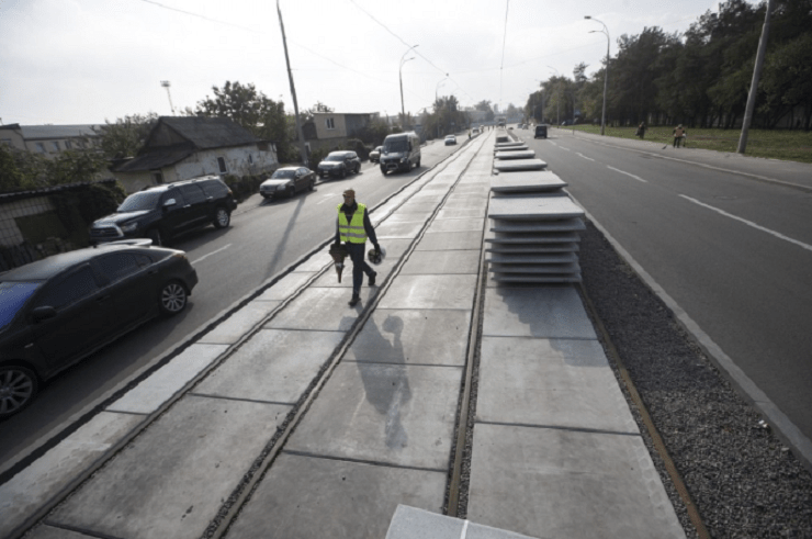 Трамвайну лінію реконструювали за тендером «Київпастрансу» в 2018 році. Тендер виграла будівельна компанія «Адамант». У тендері були прописані строки виконання робіт – початок грудня 2018 року – грудень 2020. Проте розпорядження КМДА про початок робіт з’явилося лише в березні зі строком у п’ять з половиною місяців. Бюджет проєкту 267,5 мільйонів гривень, у цей кошторис входить облаштування 12 платформ та сім павільйонів для очікування. Станом на листопад 2020 року, на трамвайній лінії по Алматинський виконали майже всі роботи.