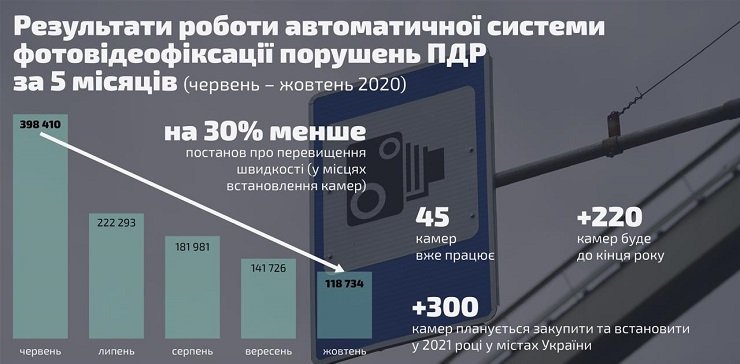 До кінця року буде підготовлено до встановлення 220 камер. А протягом наступного, 2021 року – ще 300 камер. На сьогоднішній день встановлено та працює 45 камер автоматичної фотовідеофіксації порушень ПДР. Система автоматичної фотовідеофіксації порушень ПДР запрацювала першого червня 2020 року.