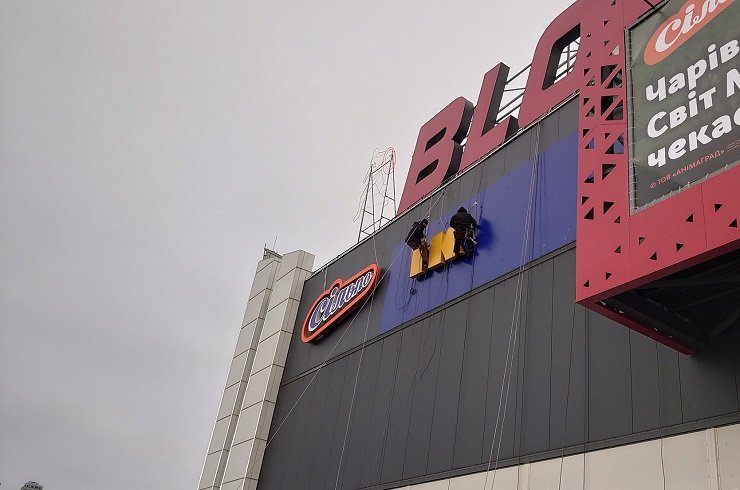 На торгово-розважальному центрі Blockbuster Mall монтують вивіску шведського виробника меблів IKEA. Це буде перший магазин в Києві. Фото опублікував Михайло Зінченко у Twitter.