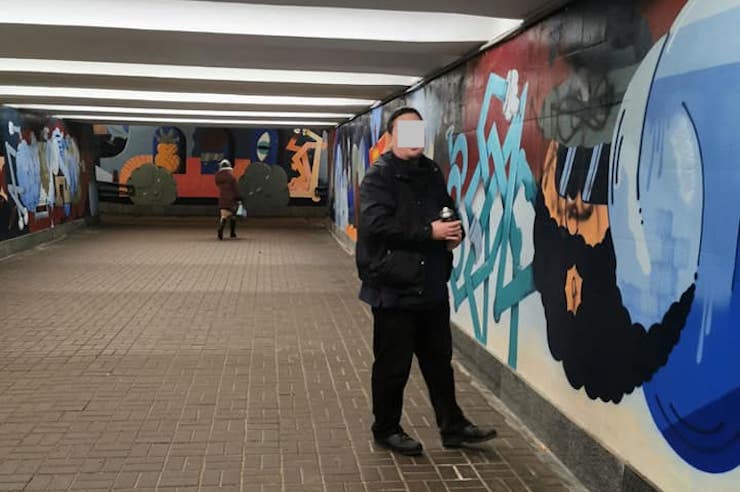 У фейсбуку ширяться фото чоловіка, який замальовує чорною фарбою з балончика фрагмент муралу в підземному переході на Деміївській площі, нещодавно відремонтованому корпорацією Roshen. Допис із закликом «зробити поганця відомим» отримав понад 2,6 тисячі поширень, а коментатори висловлюють бажання відрубати чоловікові руки і стратити.