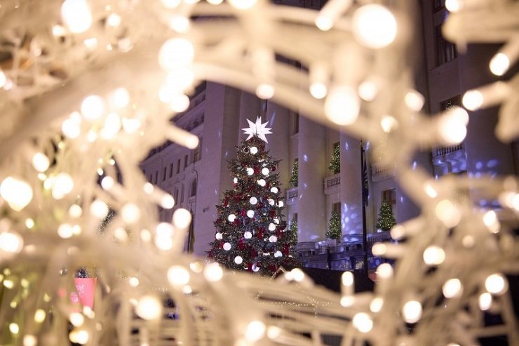 Ялинка на центральній площі прикрашена іграшками, ескізи для яких намалювали діти з особливими освітніми потребами. Приблизно місяць тому команда Олени Зеленської звернулася до організацій, які працюють з дітьми з особливими освітніми потребами, і запропонувала долучитися до створення ялинкових прикрас. На пропозицію відгукнулися майже 50 організацій, які надіслали близько 600 дитячих малюнків.