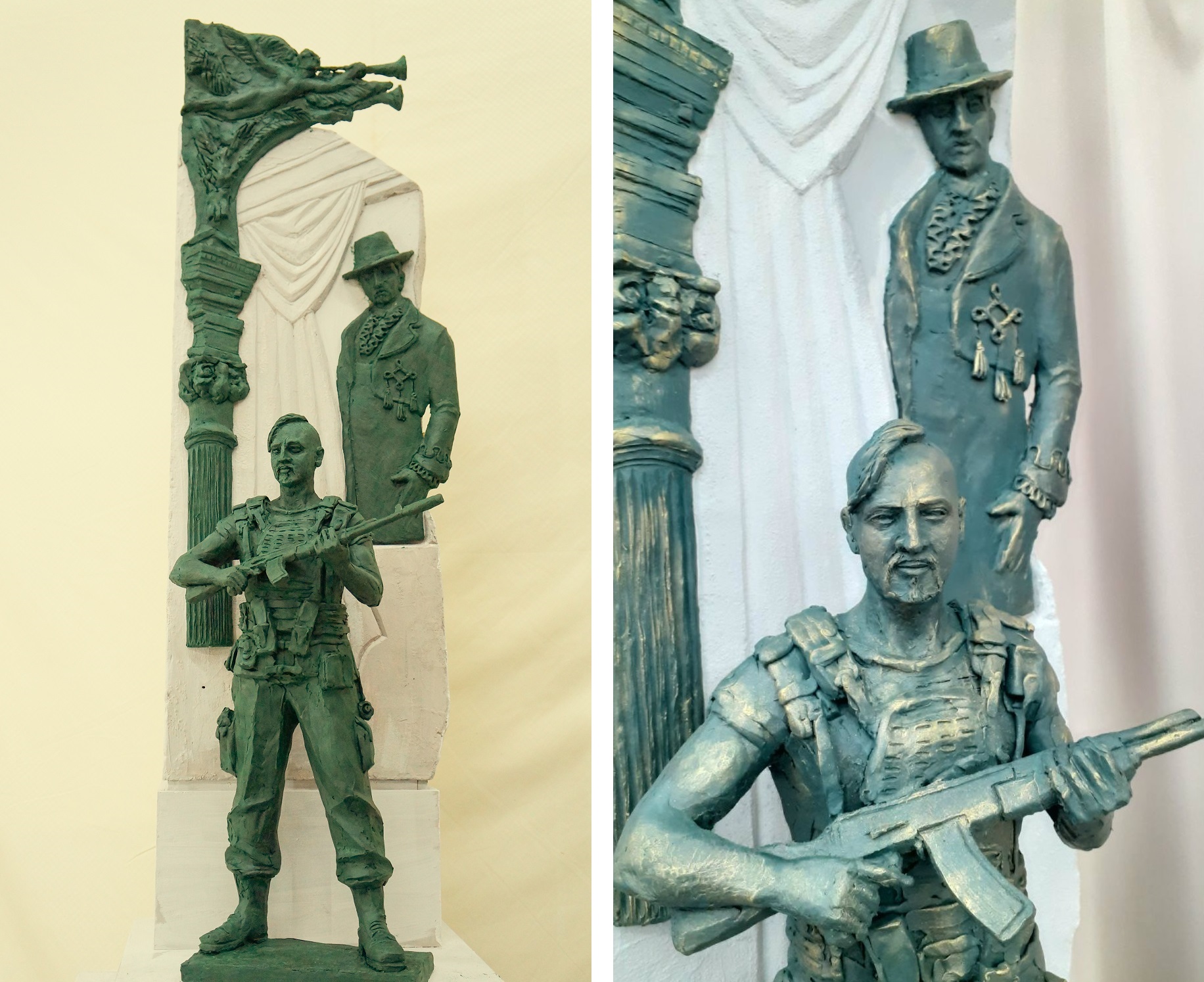 Біля сцени облаштують скульптурну композицію з бронзи і світлого граніту, над створенням якої працювали скульптори Віктор і Богдан Рябови. Скульптура Василя Сліпака буде відтворена в повний зріст (близько 190 сантиметрів). Найближчим часом представники проєкту почнуть збір коштів на реалізацію скульптури.