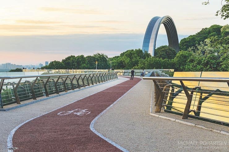 Велопішохідний міст над Володимирською гіркою від «Проектні системи Лтд». Кожен лінійний відрізок мосту орієнтовано на ту чи іншу пам’ятку: пам’ятник Володимиру Великому, пам’ятник Магдебурзькому праву, Арку дружби народів та Європейську площу.