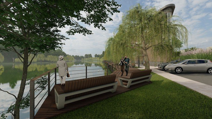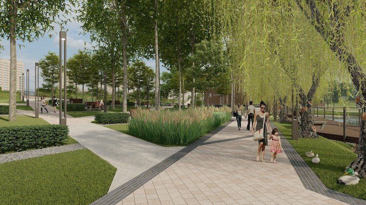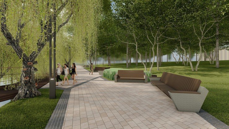 Протоптані стежини обіцяють застелити плиткою. Уздовж берега прокладуть прогулянкові стежки – терасну дошку покладуть на геошурупи. Годувати качок можна буде на спеціальних оглядових майданчиках («Їх зроблять там спеціально, щоб не перекривати птахам вихід із води»).