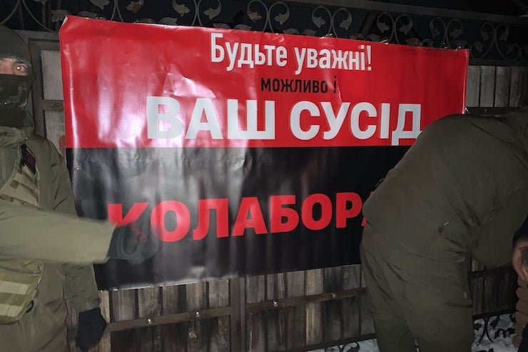 Увечері дев’ятого лютого кількадесят членів «Правого сектору» пікетували будинок міністра юстиції Дениса Малюськи через конфлікт із ринком «Столичний». Вони запалювали факели та прикріпили до воріт банер «Будьте уважні, можливо, ваш сусід – колаборант». Про це повідомили Правий сектор і сам Малюська.