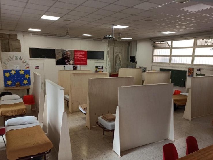 Пункт обігріву та нічліг для бездомних, облаштований волонтерами у римському палаці XIX століття. Фото: Ольга Макар