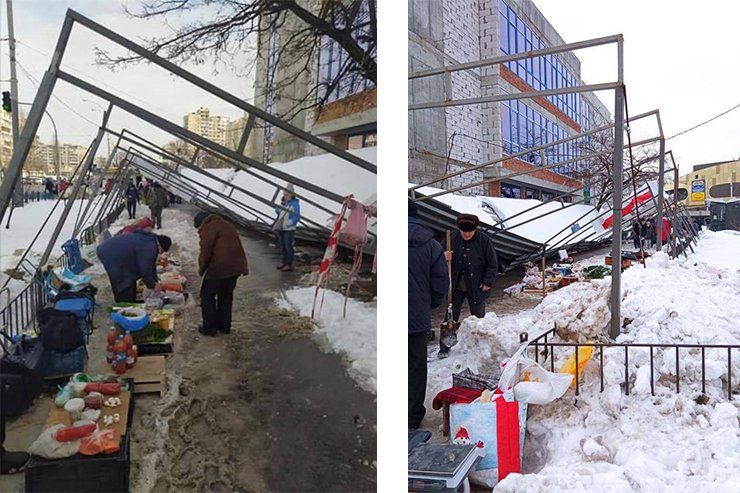 21 лютого біля станції метро «Героїв Дніпра» на ряди стихійних торговців звалився металевий навіс, повідомляють dtp.kiev.ua та районні пабліки.
