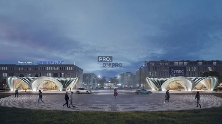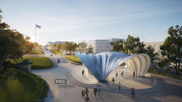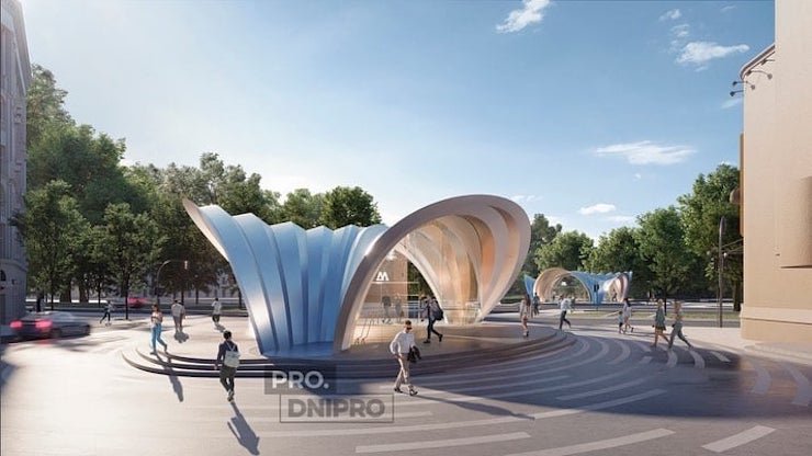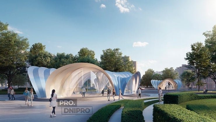 Команда урбаністів Progressive Dnipro опублікувала на своїй інстаграм-сторінці візуалізації входів і виходів зі станцій метро в Дніпрі, які проєктує британське архітектурне бюро Zaha Hadid Architects.