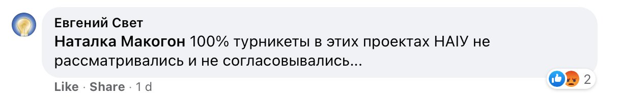 Водночас Євгеній Свєт, експерт з навчання і реабілітації незрячих людей, заперечує, що Національна Асамблея людей з інвалідністю розглядала й узгоджувала нові турнікети. На його думку, ці конструкції справді малодоступні для різних категорій маломобільних людей.