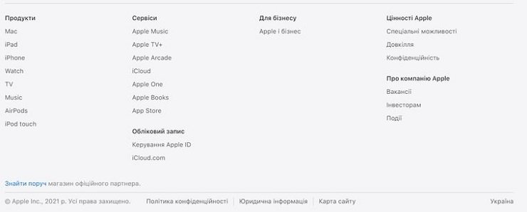 Компанія Apple запустила на основному сайті український розділ. Зараз у розділі сайту apple.com/ua лише перекладені назви окремих блоків.