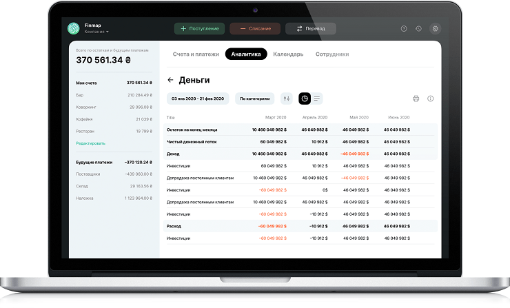 Дубілет розповів про переваги сервісу Finmap. За його словами, сервіс допомогає легко заносити витрати і доходи, давати різним співробітникам різні права доступу, в нього вбудована аналітика і дашборд, автоматична синхронізація через API з картами monobank і ПриватБанк. Також там можна створювати повторювані та майбутні платежі.