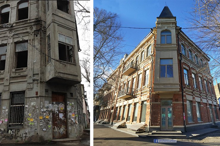Ліворуч – будинок до реставрації, праворуч – після. Фото: Yevhenii Urban