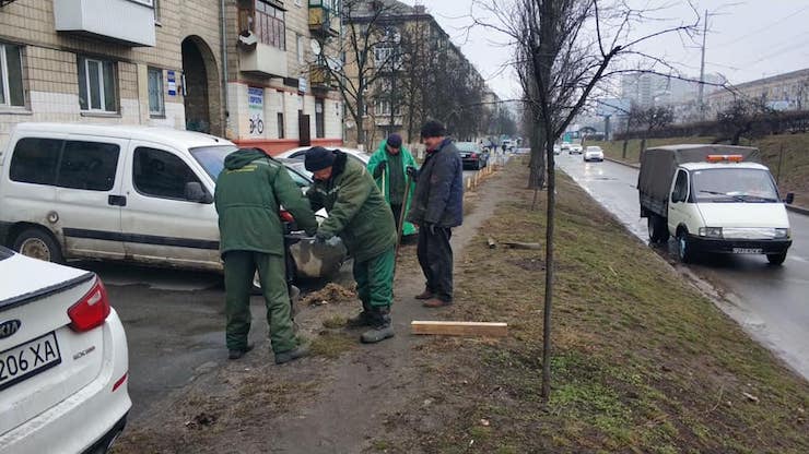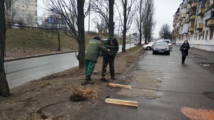 Замість антипаркувальних стовпчиків: Київзеленбуд почав ставити надовбні (фото)