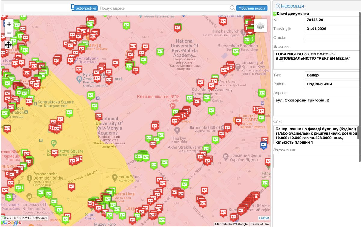 В Управлінні реклами також додали, що інспектори вже зафіксували невідповідність виданому дозволу, тому «завтра (тобто 30 березня 2021 року) буде надіслано вимогу усунути цю невідповідність конструктивному рішенню».