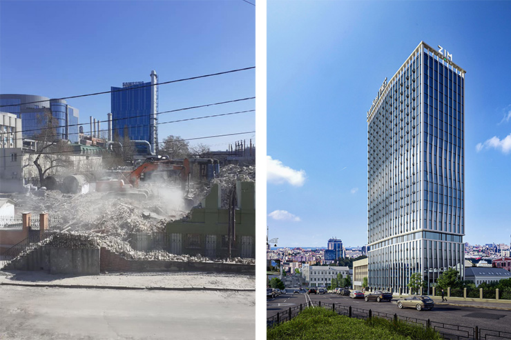 Забудовник не розмістив інформаційний стенд, який повідомляв би про його плани, утім відомо, що на місці двоповерхового будинку девелоперська компанія Zim Group планує звести 26-поверховий апарт-готель Times на 352 номери.