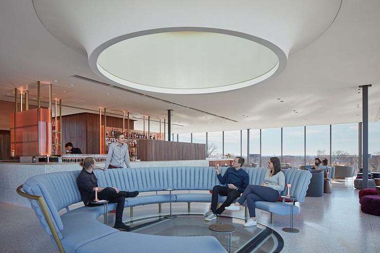 На верхніх поверхах розміщений висококласний соціальний простір, де можна випити вино або інші напої. Інтер’єр бару нагадує зали очікування в аеропортах 1960-х років.