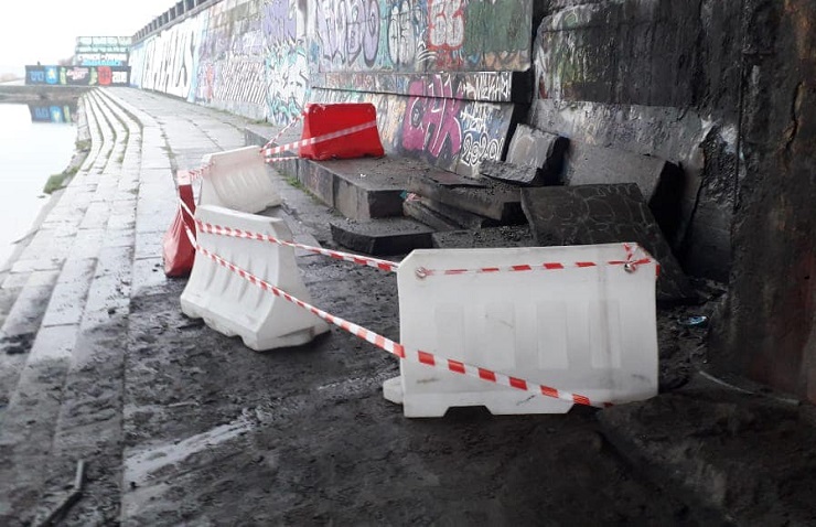 Отже, комунальники запевняють, що конструкції моста не пошкоджені і жодної загрози для людей немає. У той же час частину підпірної стінки дійсно огородили.