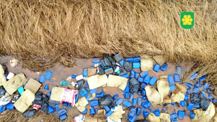 20-літрові каністри щільно вкрили русло річки на відрізку 350-400 метрів.