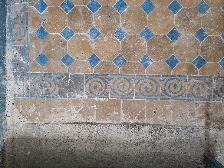 Раніше підлога у під’їзді була викладена метлаською плиткою виробництва заводу Дзєвульський та Ланге (Опочно).