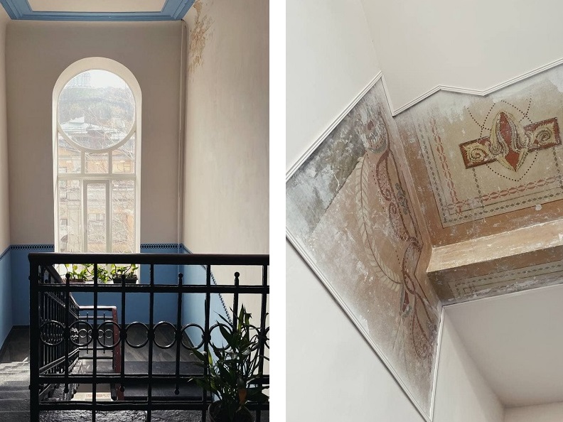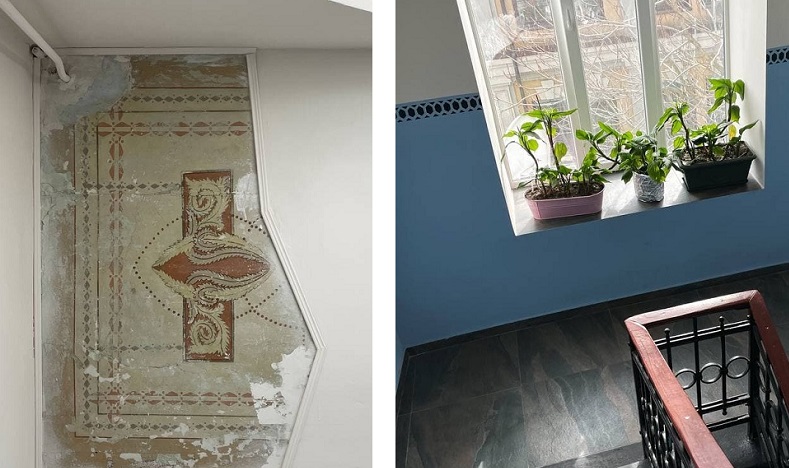 Із виявлених розписів у під’їзді зберегли тільки фрагменти, замінили вікно на пластикове та поклали нову плитку.