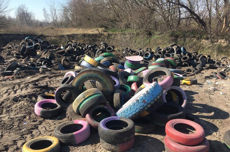 У той час як у місті масово прибирають вживані автомобільні покришки з подвір’їв, містяни почали звертати увагу на звалища покришок на околицях столиці, переважно на лівому березі.