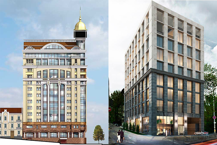 Проєкти бізнес-центру з різницею у дванадцять років. Ілюстрації: archunion та Astora