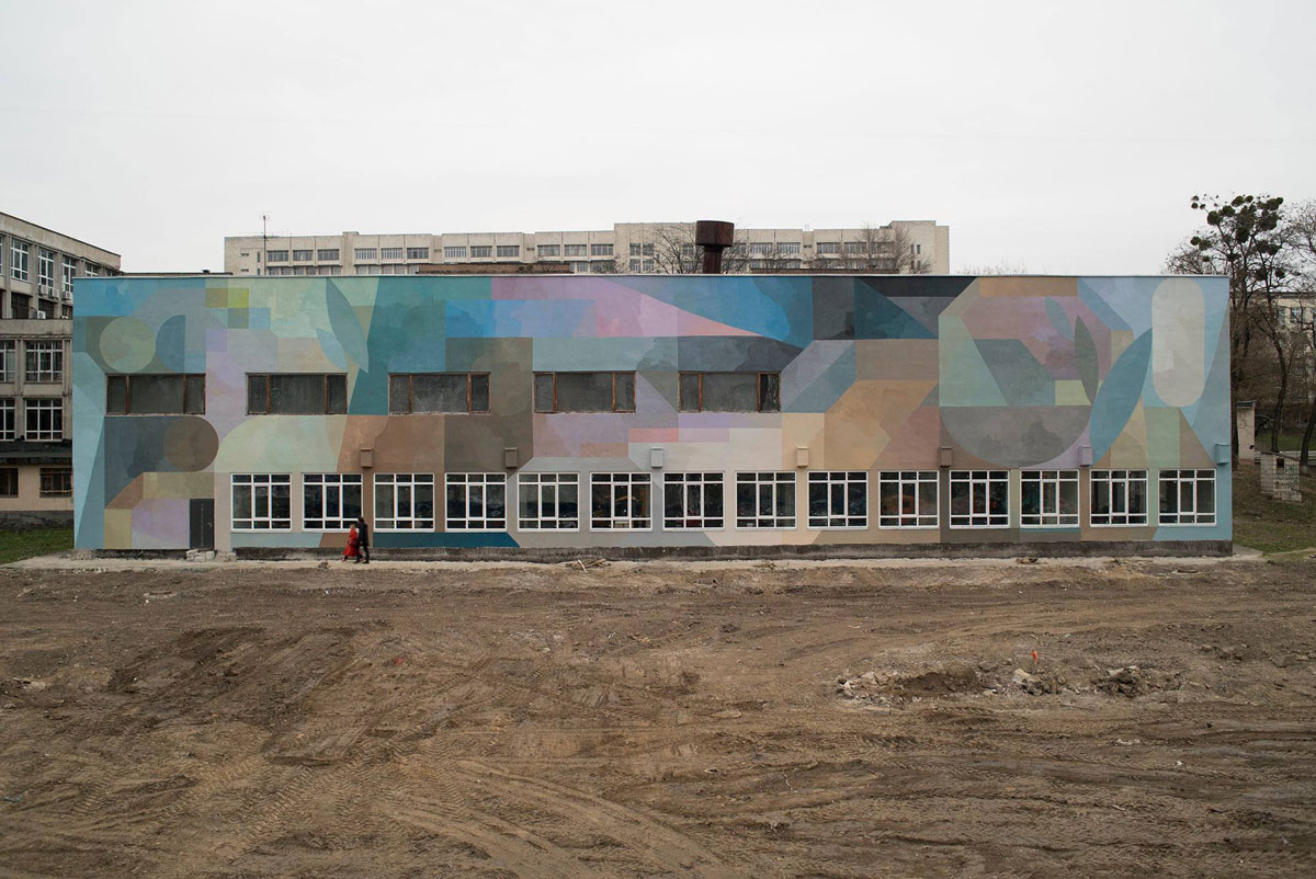 Подібний мурал «2104141700» від Nelio нещодавно з’явився і на фасаді ліцею №157 в Оболонському районі Києва. За словами митця, «прямолінійні форми нагадують навколишні архітектурні елементи та підкреслюють суворість і серйозність, необхідні для навчання в школі. Проте, завдяки грі пастельних кольорів та більш органічних фактур, ці форми ніби зливаються та пом’якшуються, створюючи однорідне та гармонійне ціле».
