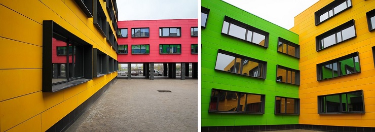 Координатор програми президента «Велике Будівництво» Юрій Голик розповів, що на кольорове рішення будівлі школи надихнув дитячий конструктор Lego.