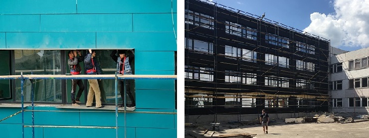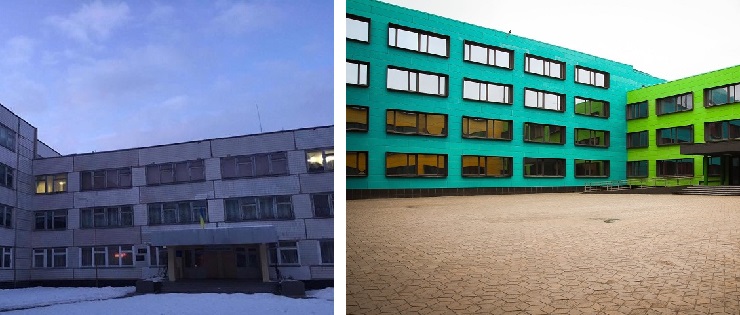 Олексій Валентіров розповів «Хмарочосу», що при реконструкції в школі залишили лише несучі стіни, а все інше замінили. Зокрема, вікна та вхідні групи, утеплили стіни та створили новий фасад.