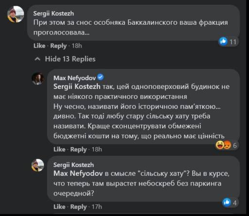 «Цимєс ще в тому, що лише кілька днів тому “Голос” обурювався знесенням будинку Уткіна біля вокзалу і пропонував заборонити нове будівництво в центральній частині міста, до якої потрапляє і адреса Іллєнка, 30», – написав тоді киянин Сергій Пасюта.