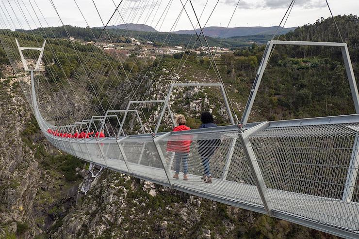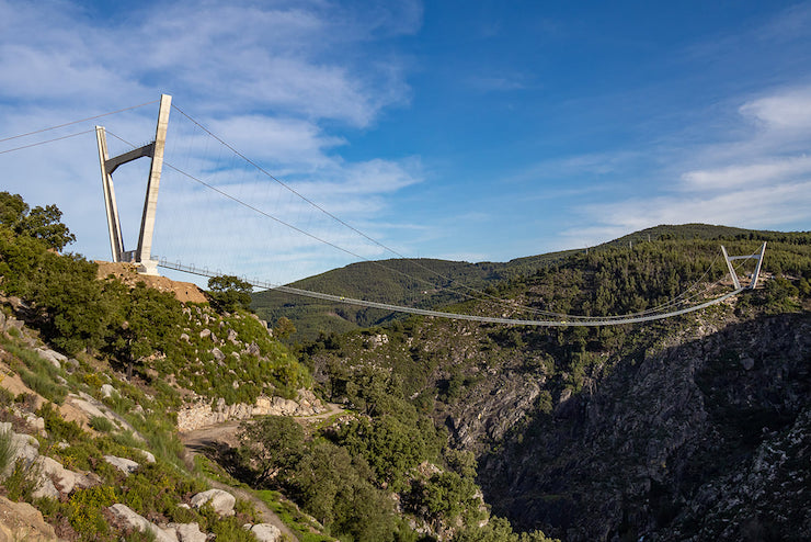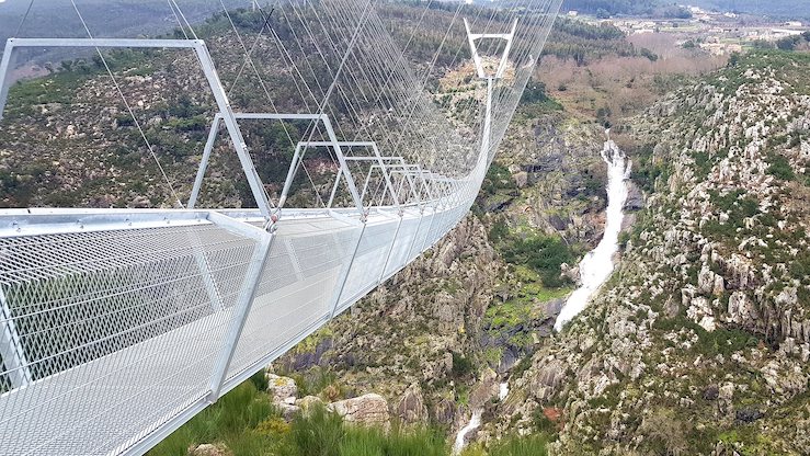 У Португалії збудували найдовший пішохідний підвісний міст у світі. Він сполучає дві скелі над річкою Пайва в геологічному парку Арока. Ця місцина розташована неподалік від Порту.