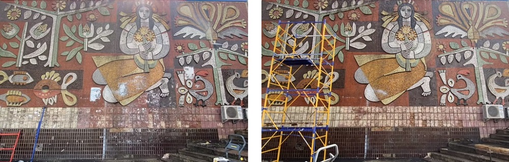 За словами Ткаченка, панно помили вперше за 50 років його існування. Автором мозаїки є художниця Ірина Перова.