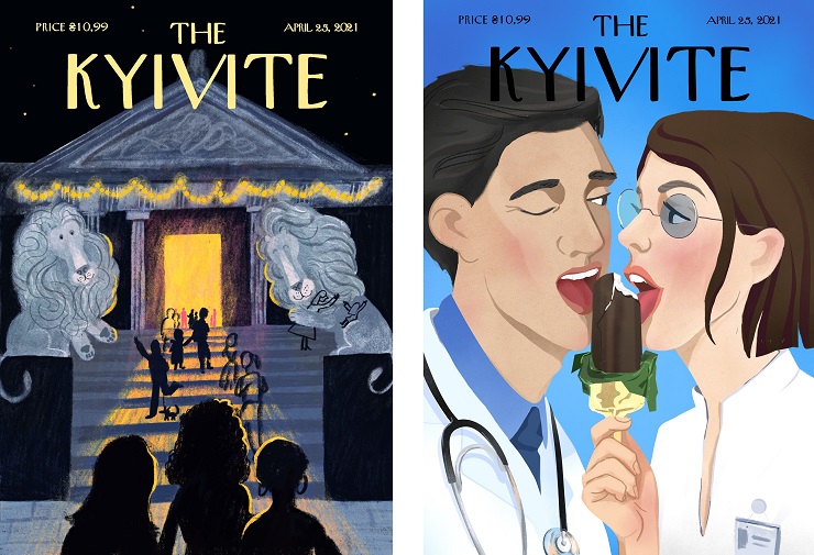 Малюнки нібито прикрашають обкладинки вигаданого журналу The Kyivite.