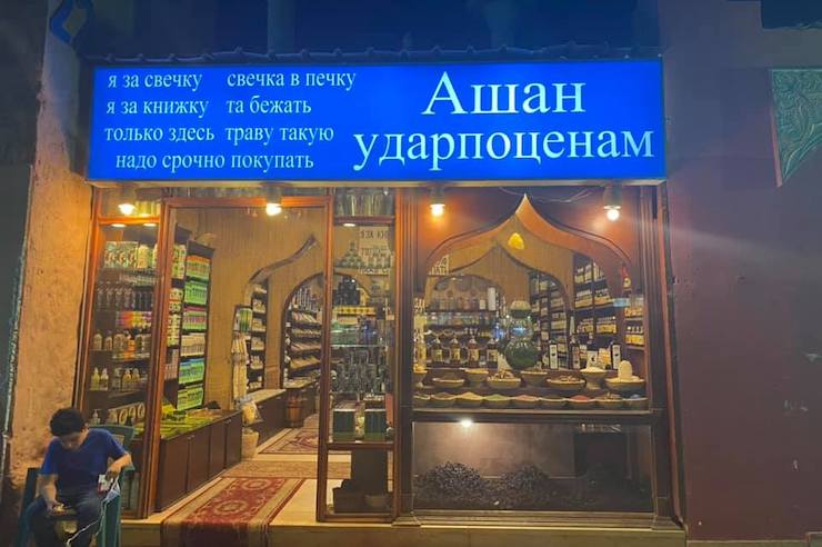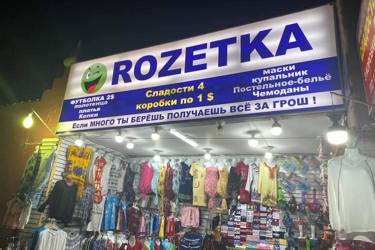 На них можна помітити вивіски «Сільпо» на магазині, який торгує косметикою, місцеві АТБ та Novus торгують виробами зі шкіри, «Епіцентр» і Rozetka – солодощами, а магазин «Ашан» пропонує купляти траву.