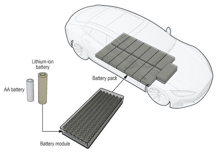 Батарея електрокарів – більша й важча, вона складається з кількох сотень окремих літій-іонних елементів, кожен з яких треба розбирати окремо.