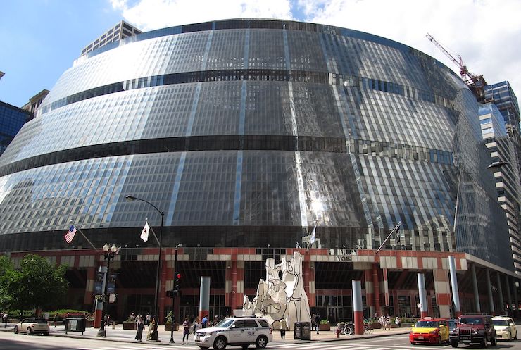 Центр Джеймса Р. Томпсона, збудований у 1985 році, зараз перебуває під загрозою демонтажу. Фото: Ken Lund / Вікіпедія