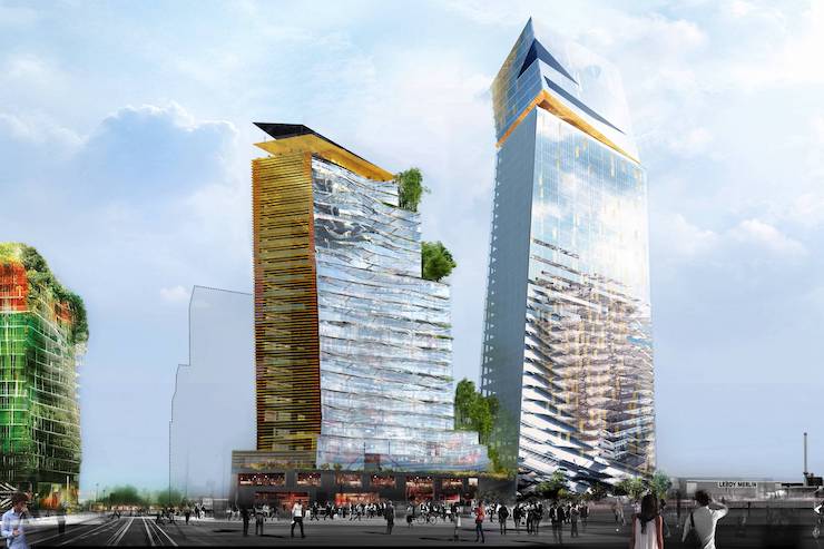 Хмарочоси будуть багатофункціональними: тут розмістять як офіси та крамниці, так і ресторани, кафе та бари. Шість поверхів другої башти займе готель, який проєктував відомий французький дизайнер інтер’єрів Філіпп Старк. На дахах розташують тераси з панорамним видом.