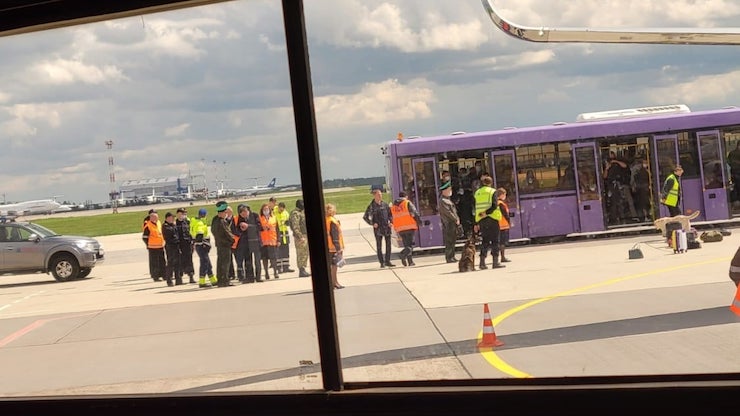 Перевірка пасажирів літака Ryanair після примусової посадки в Мінську. Фото: facebook.com/mediazona.by