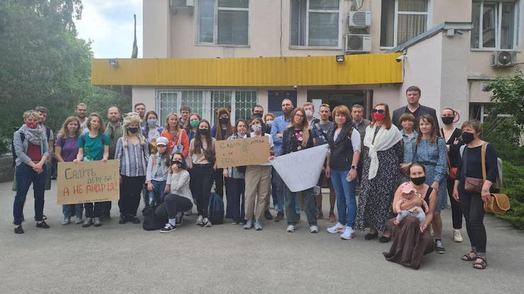 Вранці 27 травня кількадесят містян провели акцію на підтримку Андрія Хрутьби під Голосіївським райсудом, де зараз вирішується питання про запобіжні заходи підозрюваним.