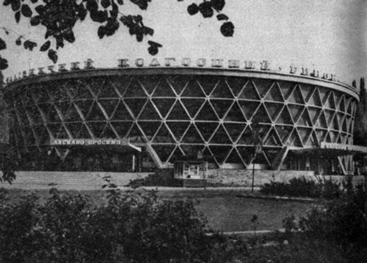 Цей ринок був зведений у 1973 році за проєктом Алли Аніщенко, однієї з небагатьох архітекторок епохи київського модернізму, про чий творчий спадок ми писали у нашій серії «Монстри модернізму». Вона вважала коло «оптимальним рішенням для критого торгового закладу», але оригінальна архітектура небагатьох її «круглих ринків» була збережена саме у цьому, «Залізничному», який у 1990-х роках був біржею, а згодом — переоблаштований під супермаркет.