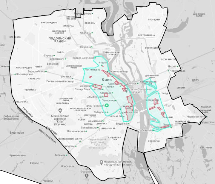 Завершення оренди можливе виключно в зеленій зоні. За замовчуванням, можна розігнатися до 25 км/год. У фіолетовій зоні швидкість значно зменшується. Це свідчить, що користувач наближається до забороненої, чорної зони. У чорній зоні самокат вимкнеться, за це буде списано з рахунку штраф.