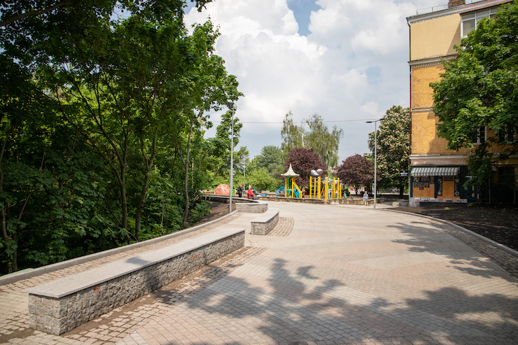 Парапети, які відгороджували алею від схилу, перетворили на лави, найдовша з яких – приблизно 50 метрів. Загалом тут встановили майже 400 метрів лав.