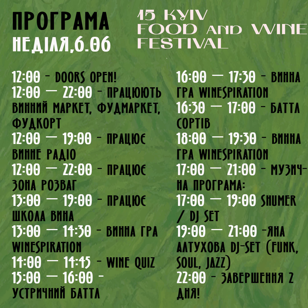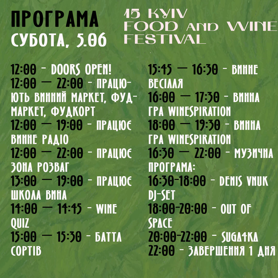 Крім маркетів вина і сира, організатори підготували безкоштовні лекції і дегустації, устричний баттл, музичну сцену тощо.