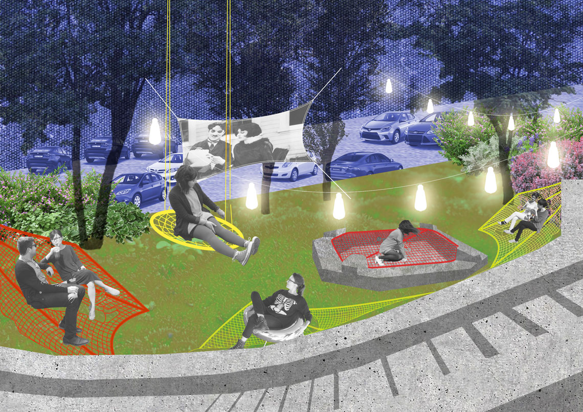 Команда glo™ та ГО «Міські реформи» пропонують додати тут освітлення, влаштувати «міську спальню» з сітками-гамаками на різних рівнях, а також потенційно організувати вуличний кінотеатр. «Поки ми маємо не фінальні проєкти, а концепції. І вже після виробу локацій будемо більш детально досліджувати можливості простору та вибирати найбільш актуальні сценарії їх використання», – зазначає Євгенія.